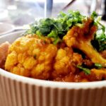 Cauliflower cooked in onion sauce, potatoes, ginger, garlic and spices