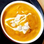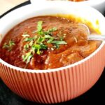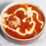 Tomato based soup flavoured with spices and fresh cilantro