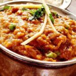 Eggplant roasted in clay oven, cooked in onion tomato, ginger and blend of spices