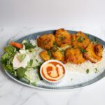 Cauliflower, Spinach, Potato, onion & cilantro mixed in a chickpea flour batter, deep-fried made into bite size fritters. Served with chutney