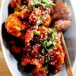 Crispy fried cauliflower tossed with garlic