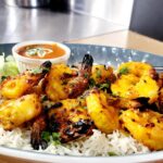 Prawns marinated with yogurt, ginger, garlic and Indian spices and cooked in Tandoor